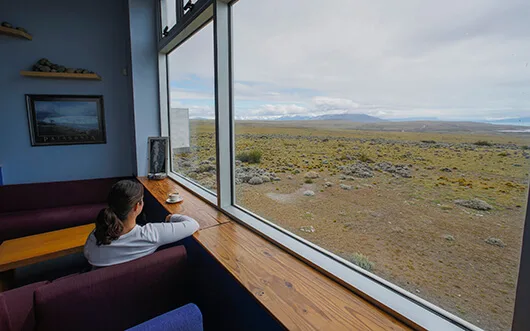 Podrán admirar el Lago Argentino mientras disfrutan de una copa de vino junto a una empanada de cordero.